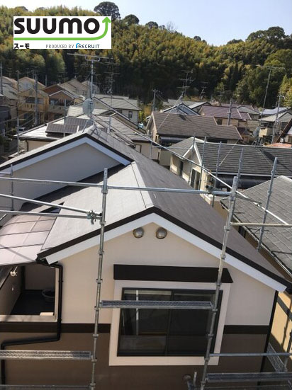 屋根は元々カラーベストでしたので塗装とカバー工法でお客様も悩みましたが、費用対効果の良いカバー工法で施工することになり外壁の色とも合わしつつ、キレイに仕上げました!