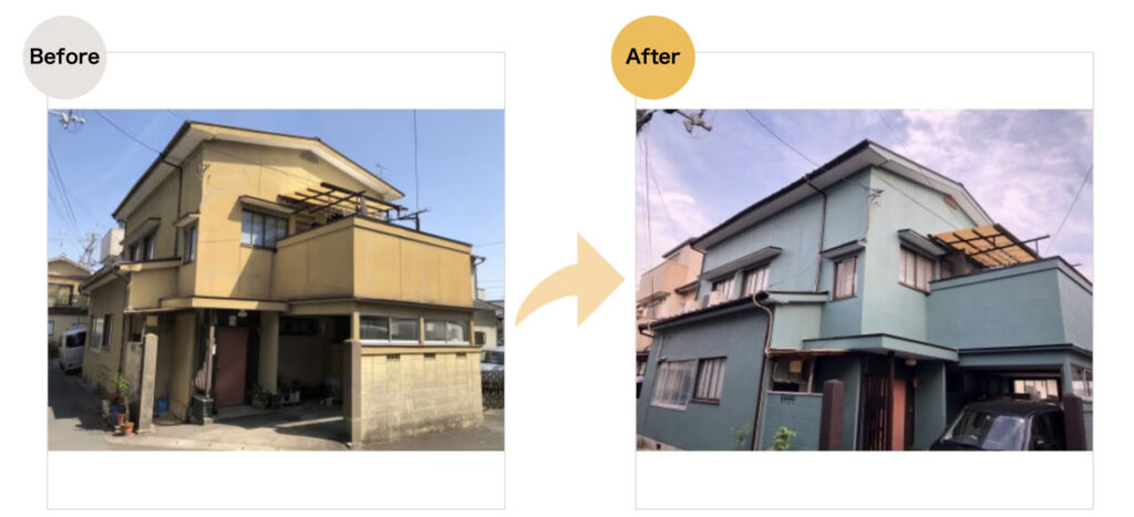 施工前は外壁の至る所に亀裂が多数ありました。1カ所ずつ丁寧に亀裂カ所の補修を行い下地調整を念入りに施してから、日本ペイント水性シリコンセラUVを3回塗りで仕上げました!見違えるような綺麗さです!ここまで質に拘り施工を行う弊社の職人を誇りに思います。
